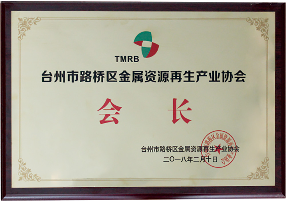 臺州市路橋區(qū)金屬資源再生產(chǎn)業(yè)協(xié)會會長